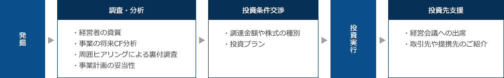 当社では、投資先企業の株主、経営者・従業員全てが経済価値を享受できるよう投資プロセスを組み立て、新規事業による起業支援や、企業再生による「雇用の維持」、「ノウハウの伝承」等、社会的意義のある投資スタンスを徹底しています。