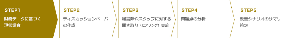 事業収益性、原価、固定費、キャッシュフローの調査など、クライアントが抱える財務状態を、徹底的に分析。